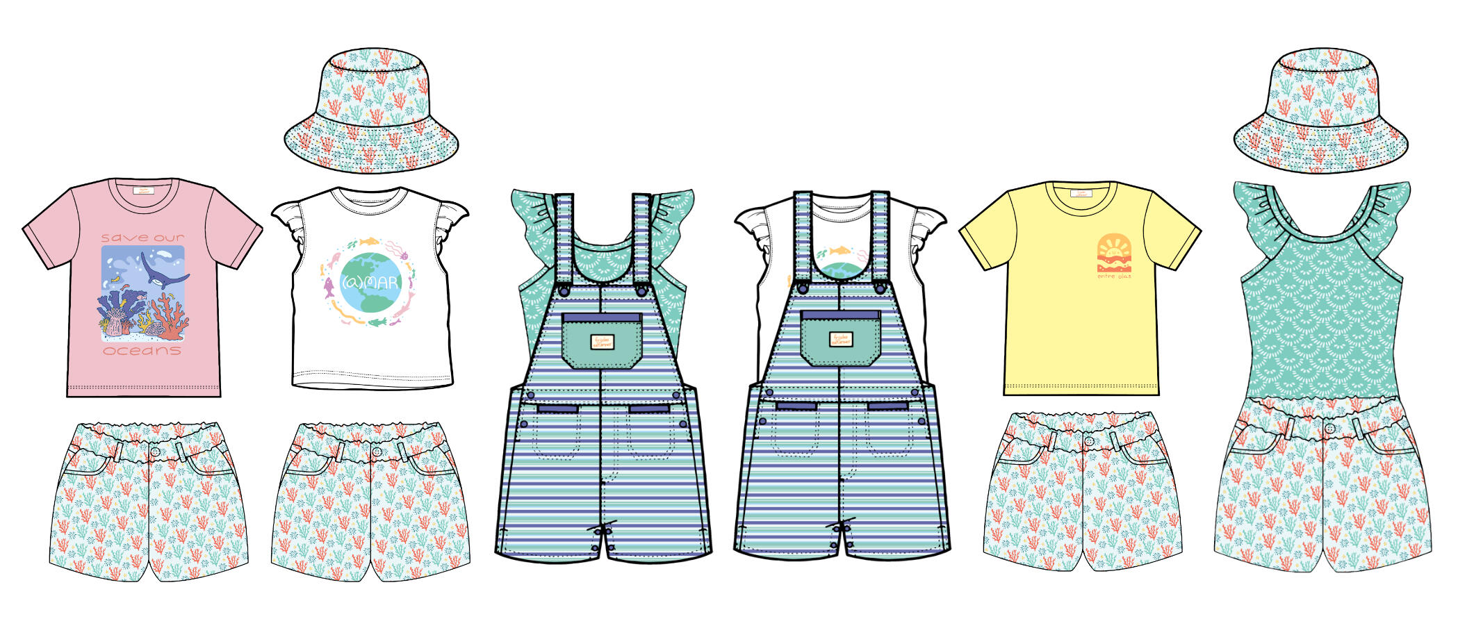Through numerous sea creatures and ocean motifs this collection brings a fun and educational outlook to next season's summer apparel.